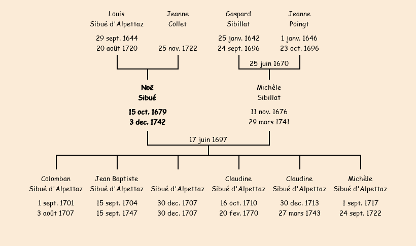 Noë Sibué apparait dans le recensement de la population de 1716. |