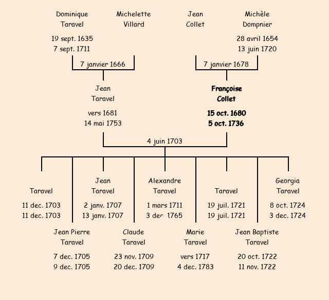 Père : Jean Collet | Parrain : Jean Baptiste Collet (fils de Jean Claude, frère de la marraine) |