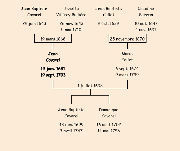 Mère : Jenette Bullière | Marraine : Gabrielle Covarel (fille de Jean Baptiste) |