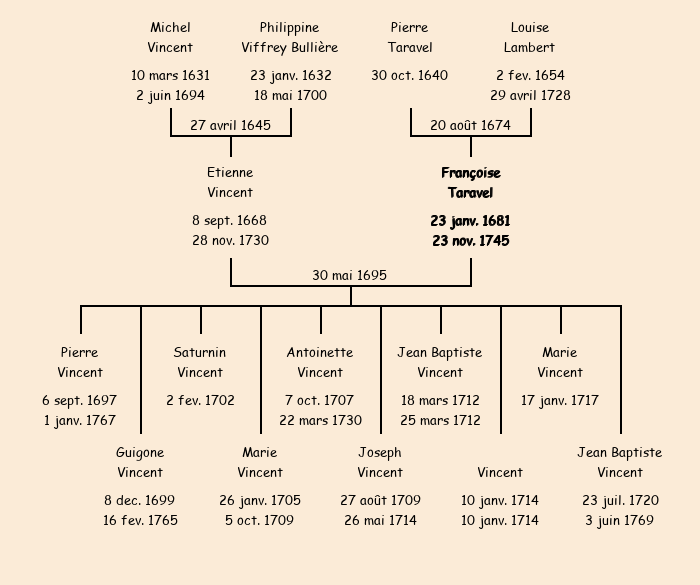 Françoise Taravel apparait dans le recensement de la population de 1716. |