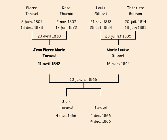 Epoux : Jean Pierre Marie Taravel (23 ans, né le 11 avril1842, cultivateur au Roset, a signé), fils de Pierre (cultivateur au Roset, a signé) et de Rose Thorain (ménagère a signé) |