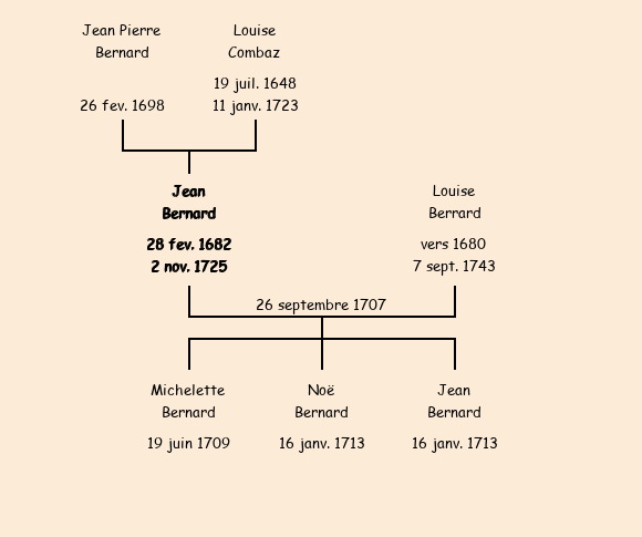 Jean Bernard apparait dans la consigne des mâles de 1713 (absent). |
