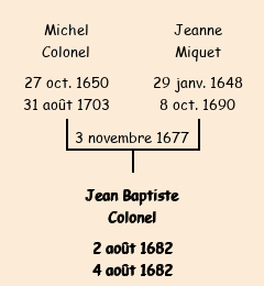 Mère : Jeanne Miquet | Marraine : Louise Collonel (fille du dit Jean Baptiste) |