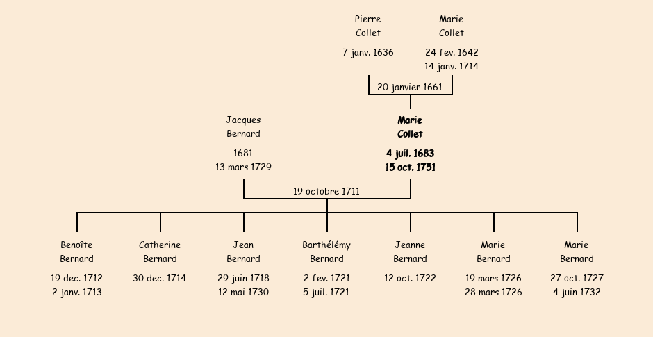 Marie Collet apparait dans le recensement de la population de 1716. |