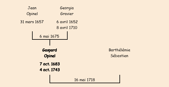 Gaspard Opinel apparait dans la consigne des mâles de 1713 (absent). |
