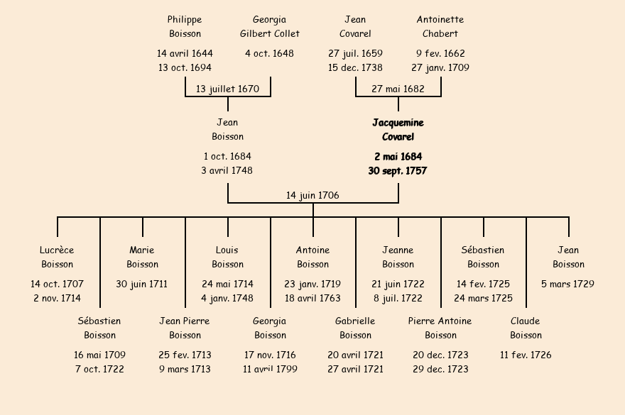 Jacquemine Covarel apparait dans le recensement de la population de 1716. |