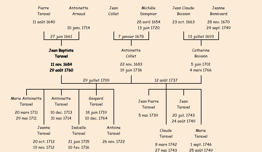 Jean Baptiste Taravel apparait dans la consigne des mâles de 1713. |