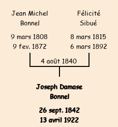 Joseph Damase Bonnel apparait dans le dénombrement de la population de 1881. |