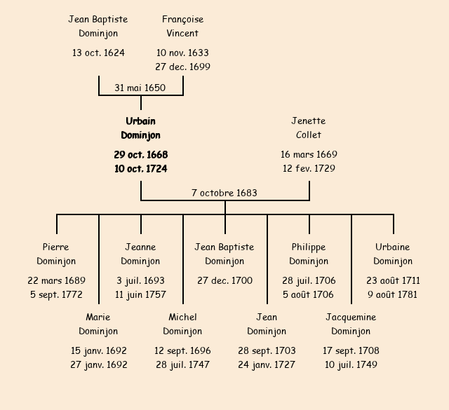 Urbain Dominjon apparait dans le recensement de la population de 1716. |