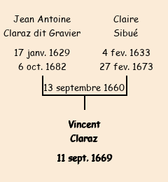 Père : Jean Antoine Claraz (dit Gravier) | Parrain : Vincent Dompnier (fils de Jean Baptiste) |