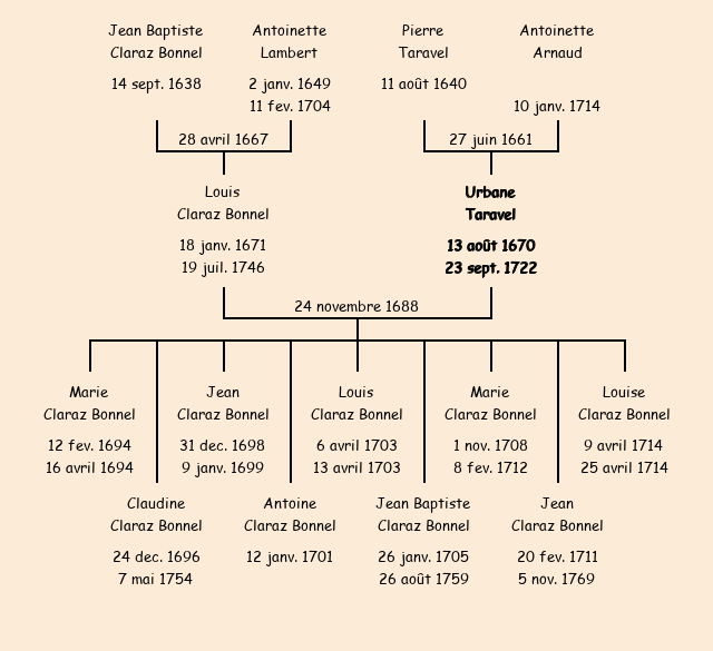Epouse : Urbaine Taravel, fille de Pierre |