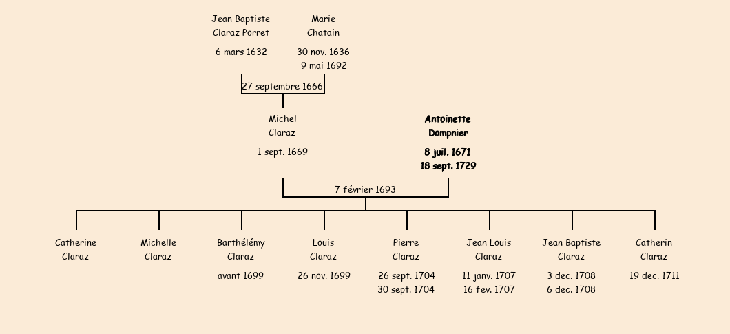 Père : Jean Baptiste Dompnier | Parrain : Claude Taravel (le jeune) |