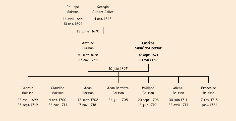 Lucrèce Sibué d'Alpettaz apparait dans le recensement de la population de 1716. |
