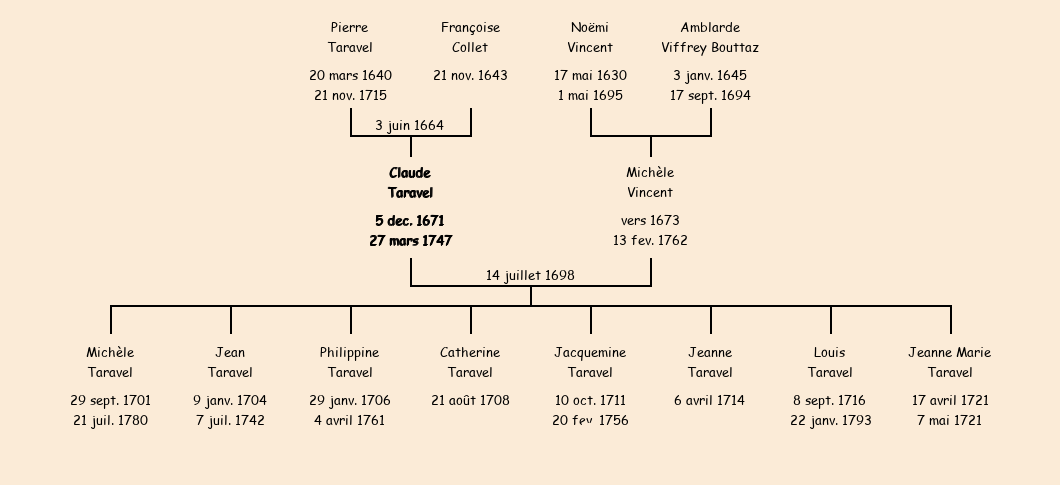 Mère : Françoise Collet | Marraine : Urbaine Taravel (fille de Pétremand) |