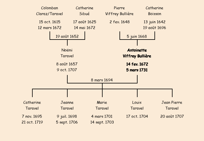 Antoinette Viffrey Bullière apparait dans le recensement de la population de 1716. |