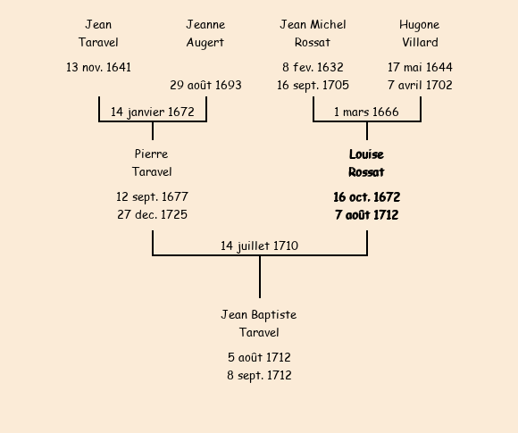 Mariée (37 ans) avec Pierre Taravel (32 ans) le 14 juillet 1710 à Fontcouverte ![]() |