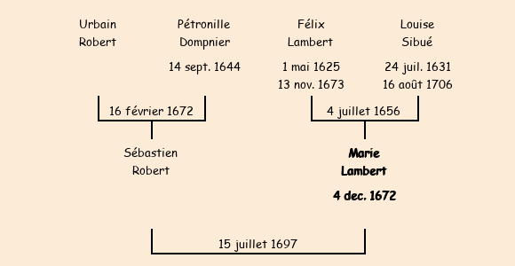 Mariée (24 ans) avec Sébastien Robert le 15 juillet 1697 à Villarembert ![]() |