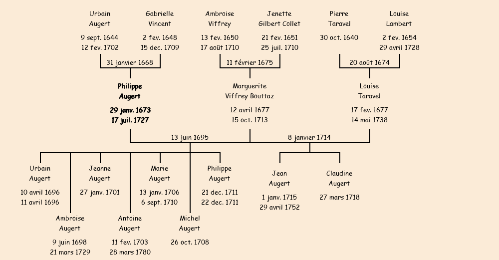 Marié (22 ans) avec Marguerite Viffrey Bouttaz (18 ans) le 13 juin 1695 à Fontcouverte ![]() |