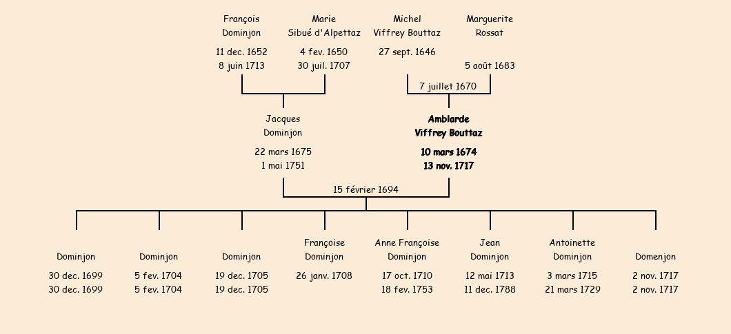 Mère : Marguerite | Marraine : Amblarde Viffrey Bouttaz (fille de Pierre) |