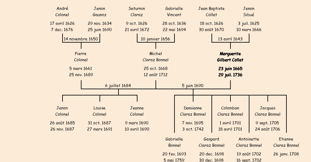 Epouse : Marguerite Boisson (veuve de Pierre Colonel), fille de Jean Baptiste |