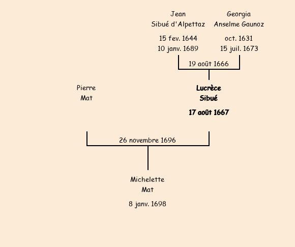 Epouse : Lucrèce Sibué d'Alpettaz, fille de feu Jean |