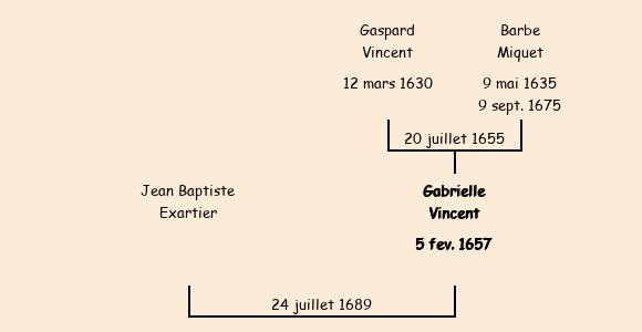 Mariée (32 ans) avec Jean Baptiste Exartier le 24 juillet 1689 à Saint-Jean-de-Maurienne |