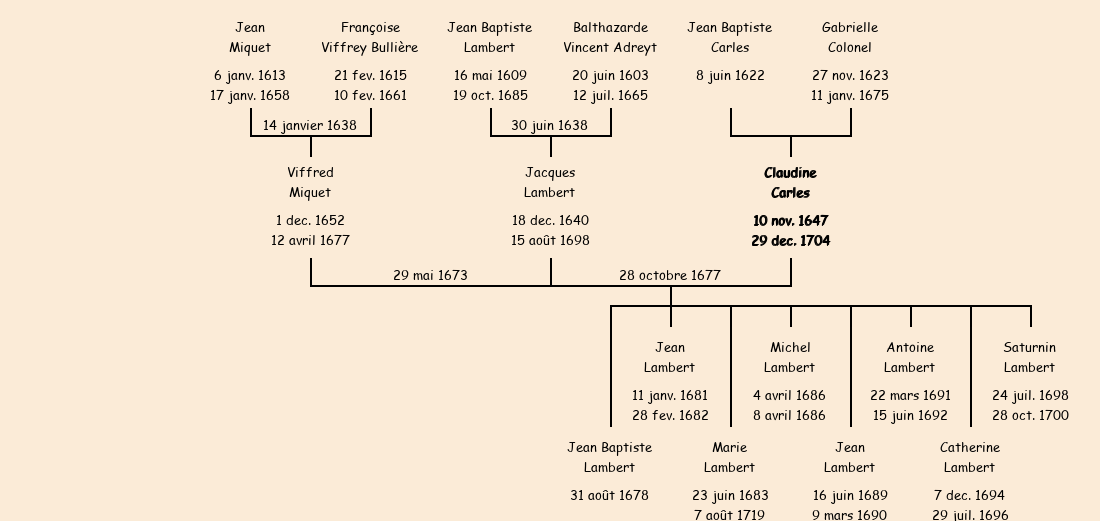 Epouse : Claudine Buisson Carles (veuve de Viffrey Miquet) |