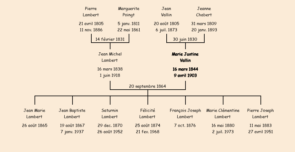 Marie Justine Vallin apparait dans le dénombrement de la population de 1876. |