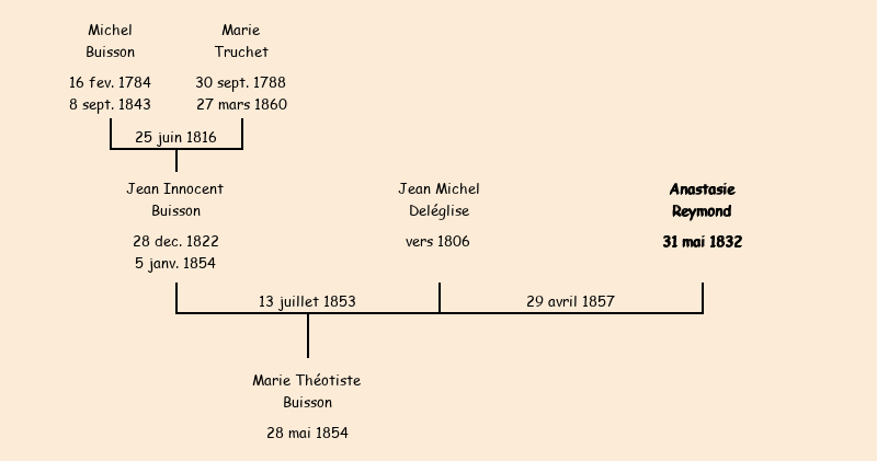 Epouse : Anastasie Reymond (21 ans, de Montrond, a marqué), fille de feu Georges et de feue Madeleine Novel |