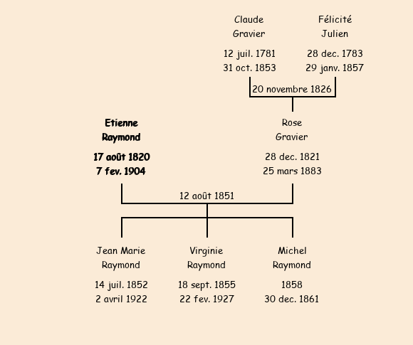 Epouse : Rose Gravier (30 ans, a marqué), fille de Claude (a marqué) et de Félicité Julien |