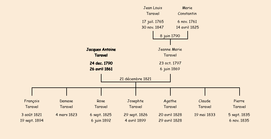 Epouse : Jeanne Marie Taravel, fille de Louis et de Marie Constantin |