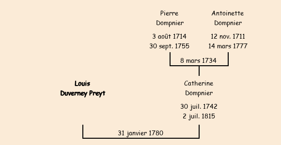 Epoux : Louis Duverney Preyt (veuf de Thérèse Robert fille d'Alexis décédé, habitant de Villarembert), fils de feu Jean Baptiste |