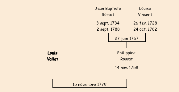 Epoux : Louis Vallet (né et habitant à Saint Jean, paroisse de l'Assomption), fils de Jean et de feue Marie Valloire |
