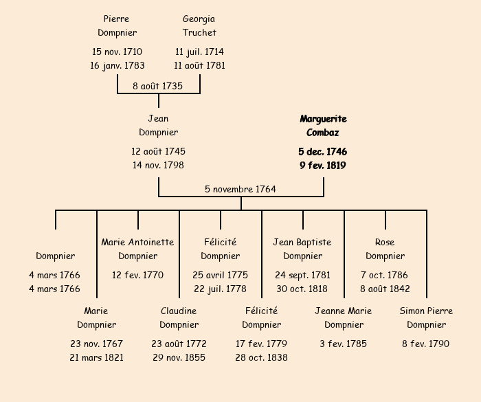 Epouse : Marguerite Combaz (d'Albiez le Vieux), fille de feu Colomban |