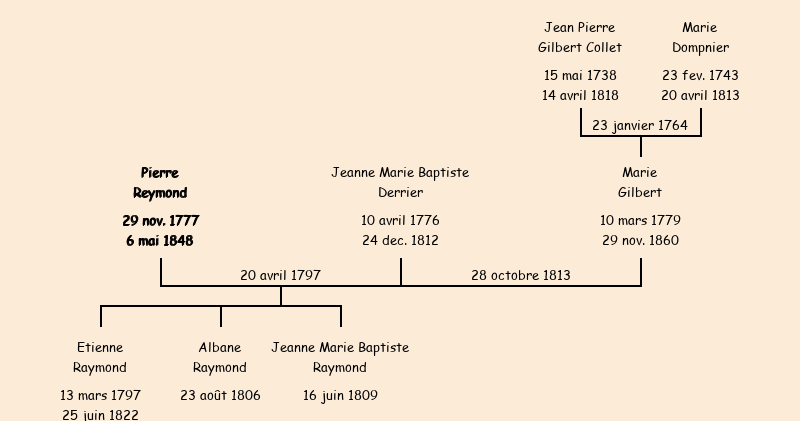 Epoux : Pierre Raymond (de Saint Pancrace, veuf de Marie Derrier), fils de feu Mamert et de Nicole Champlong |