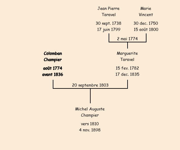 Epoux : Colomban Champier (né et habitant à Saint Jean de Maurienne), fils de feu Joseph et de Marie Gardet |