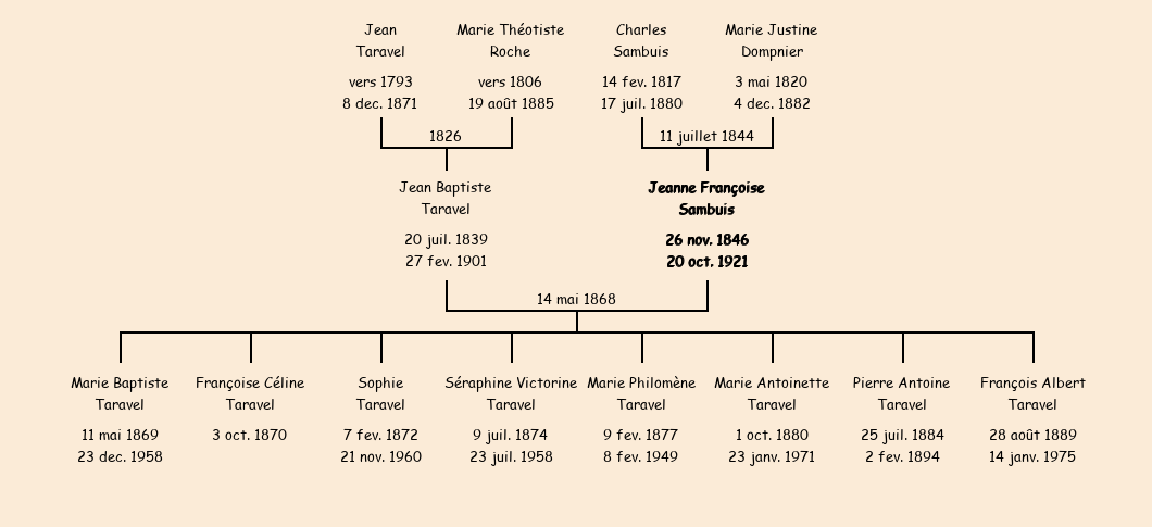 Jeanne Françoise Sambuis apparait dans le dénombrement de la population de 1876. |