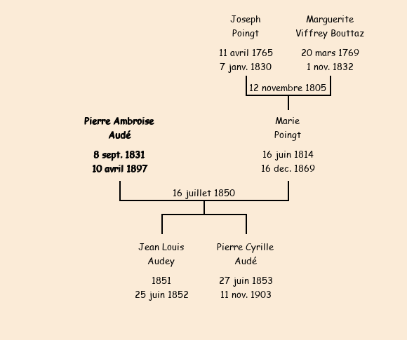 Pierre Ambroise Audé apparait dans le dénombrement de la population de 1876. |