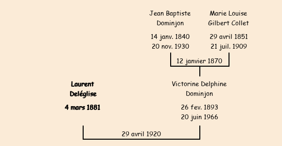 Marié (39 ans) avec Victorine Delphine Dominjon (27 ans) le 29 avril 1920 à Saint-Jean-de-Maurienne |