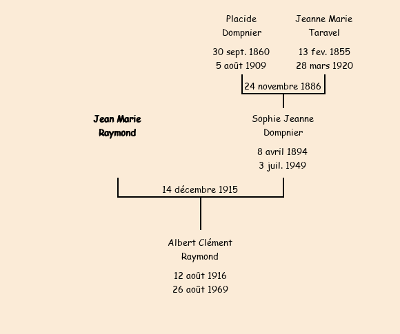 Epoux : Jean Marie Raymond (né à Saint Pancrace le 23 avril1881, cultivateur et ouvrier d'usine), fils de Marie Justine Raymond (veuve Champier, domicilié aux Fontaines à Saint Pancrace) |