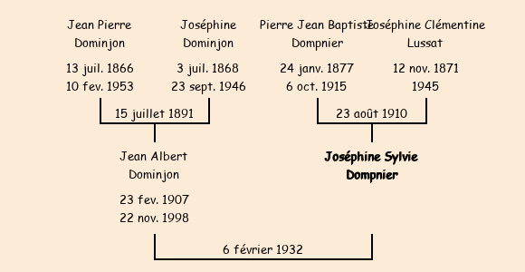 Mariée avec Jean Albert Dominjon (24 ans) le 6 février 1932 à Saint-Pancrace |