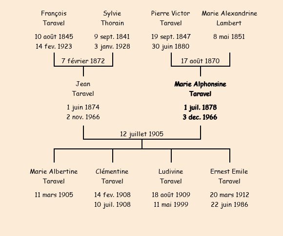 Marie Alphonsine Taravel apparait dans le dénombrement de la population de 1906. |