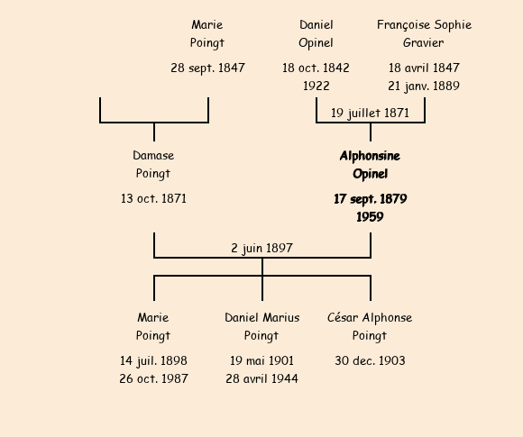 Mariée (17 ans) avec Damase Poingt (25 ans) le 2 juin 1897 à Albiez-Montrond |