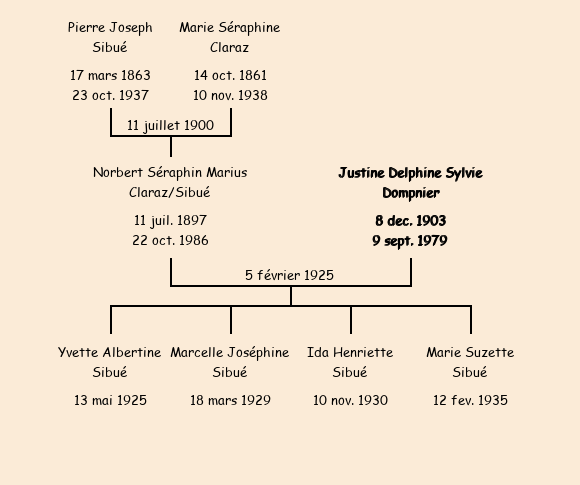 Mariée (21 ans) avec Norbert Séraphin Marius Claraz/Sibué (27 ans) le 5 février 1925 à Saint-Pancrace |
