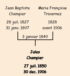 Déclarants : Antoine Champier fils de Jean Baptiste décédé, 36 ans, cultivateur né à Saint Pancrace domicilié aux Oules (Saint Jean de Maurienne) frère du mort et Jean François Rossat fils de Saturnin, 29 ans cultivateur né et domicilié aux Enverseys, non parent du mo |