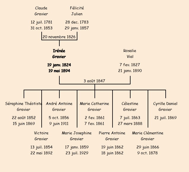 Irénée Gravier apparait dans le dénombrement de la population de 1876. |