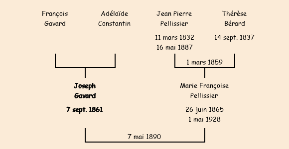 Epouse : Marie Françoise Pellissier (25 ans, née le 26 juin1865, du Tillerey, cultivatrice, n'a pas signé), fille de Jean Pierre (décédé au Tillerey le 16 mai1887) et de Thérèse Bérard (cultivatrice, n'a pas su signer) |