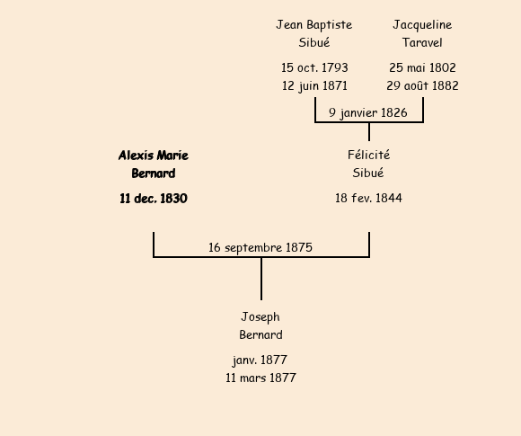 A son mariage : fils de Jean décédé à Saint-Jean-de-Maurienne le 28 juin 1863 et d'Etiennette Laurent décédée le 27 novembre 1860. Veuf en premières noces de Marie-Baptiste Blanc décédée à Saint-Jean-de-Maurienne le 20 octobre 1873. Cordonnier demeurant à Saint-Jean-de-Maurienne en 1877. |