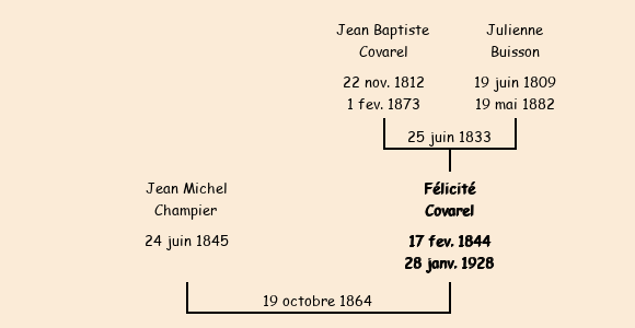 Mariée (20 ans) avec Jean Michel Champier (19 ans) le 19 octobre 1864 à Saint-Pancrace |