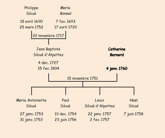 Epouse : Catherine Bernard (de Saint Sorlin d'Arves mais demeurant depuis plusieurs années à Villarembert), fille de feu Barthélémy |